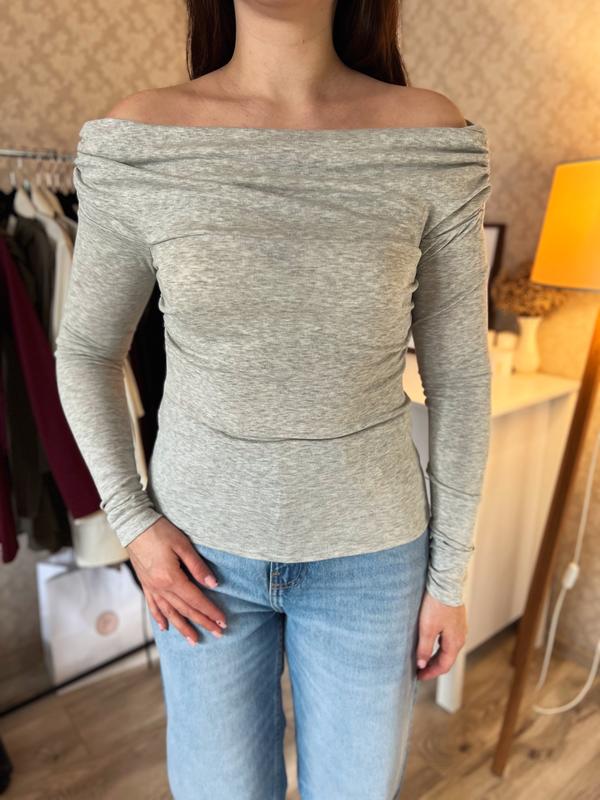 Лонгслив Mango в сером цвете с приспущенными плечами, доступен в размерах: S, M, L, цена - 699 грн. Бесплатная доставка по городу Мукачеву, отправка по Украине по тарифам перевозчиков.