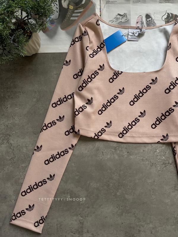 Adidas новый топ мультилого укороченный с длинным рукавом бежевый лонг лонгслив