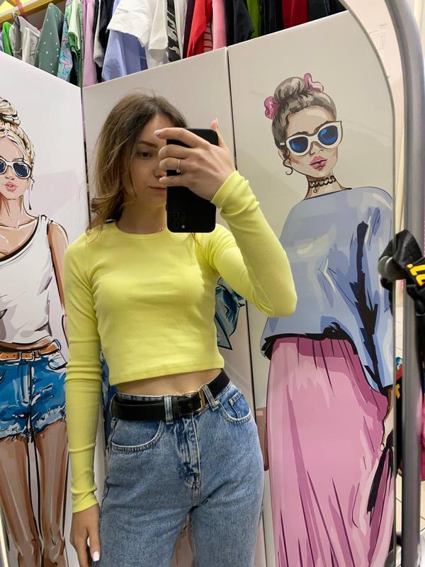 Желтый укороченный лонгслив от JJXX. Имеется в двух размерах: S, XL По бірці XL, може бути і М Длина - 45 см Рукав от горловины - 73 см, от шва - 66 см В груди полхват - 40-51 см Красиво тянется