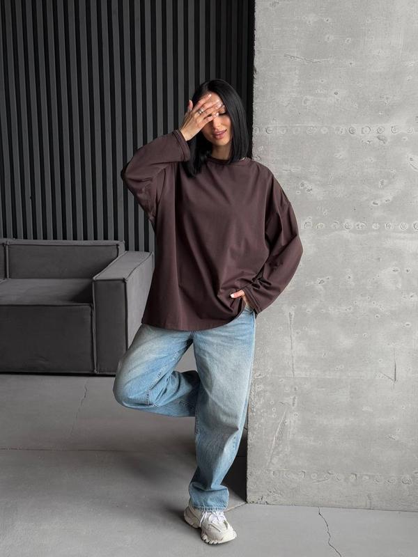 Дело без которого не обойтись лонгслив must have вашего гардероба ⚜️мод.244 ⚜️ткань.кулир -вискоза Турция (качество люкс) ⚜️размер.универсал ⚜️цвет.шоколад 🍫 ⚜️ціна. 650 грн замеры грудь 124 рукав с плечом 74 Длина 73
