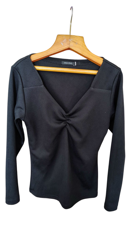 Трикотажная ткань с фигурным вырезом на груди,лиф двойной, имеет стрейч. Н0 Г 40 НОт 35 Длж.от плеча 56 Д.Рук. 51