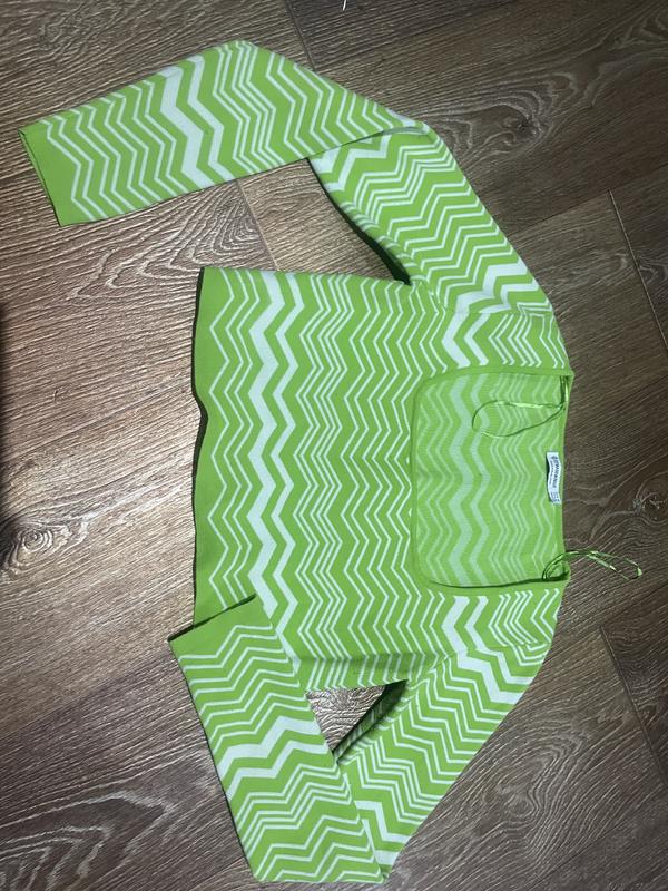 Длина рукава 56,5 см Длина 36,5 см Под руками 40 см Цвет ярко салатовый с белым
