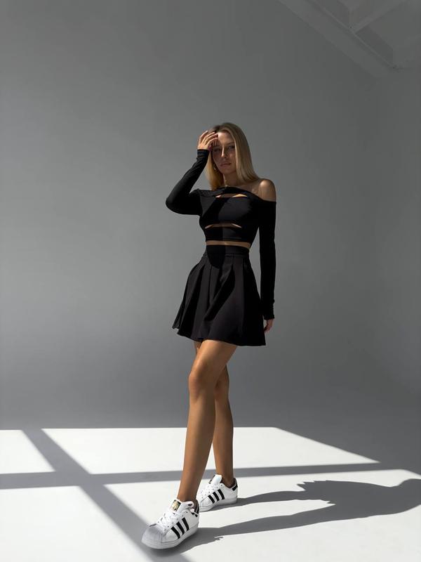 🖤ДоПОЛНИТЕЛЬНО НОВЫЙ КОЛИР 🖤 лонгслив ▪️мод 272 ▪️ткань: микродайвинг ▪️цвет: Белый, черный ▪️SM, ML ▪️450 грн ФОТО РЕАЛ Стильный лонгслив с вырезами; Выполнен из качественной ткани, садится по фигуре 😍 С прорезями для пальчиков 👌 ❗️юбка на фото - мод 124 Размер: SM | ML Груди : 85-90 | 90-98 см Талия: 60-69 | 66-75 см Код2005(танан)