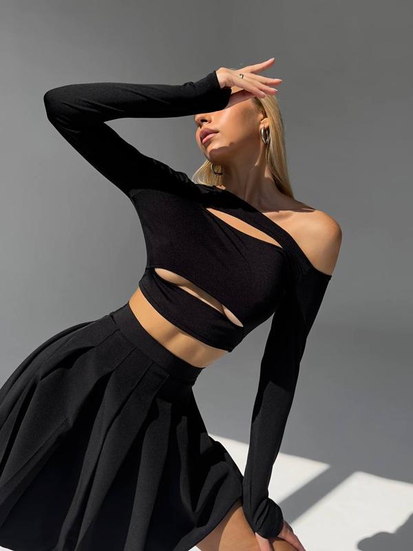 🖤ДоПОЛНИТЕЛЬНО НОВЫЙ КОЛИР 🖤 лонгслив ▪️мод 272 ▪️ткань: микродайвинг ▪️цвет: Белый, черный ▪️SM, ML ▪️450 грн ФОТО РЕАЛ Стильный лонгслив с вырезами; Выполнен из качественной ткани, садится по фигуре 😍 С прорезями для пальчиков 👌 ❗️юбка на фото - мод 124 Размер: SM | ML Груди : 85-90 | 90-98 см Талия: 60-69 | 66-75 см