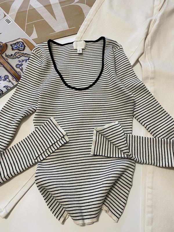 Вʼязаний лонгслив в смужку Качественная плотная вязка На рукавах разрезы Размер S, также можно на М Пог 35, пот, 27, длина 53, рукав 67 Стан - идеальный