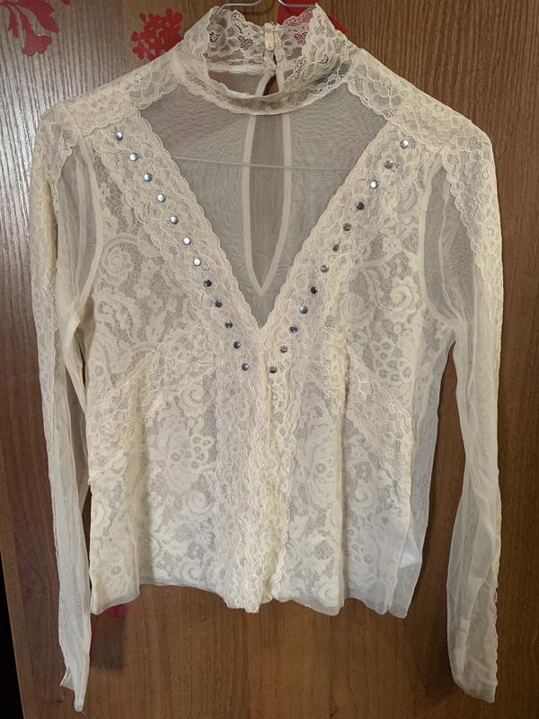 Милый лонгслив от Topshop Cocтояние новой вещи Сетка , кружево, заклепки Размер 8 ( замеры по запросу) 100% полиэстер