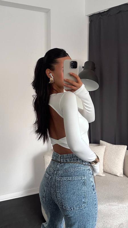 Женский укороченный лонгслив с открытой спиной и длинными рукавами