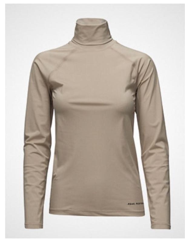 Лонгслив, водолазка от Peak Performance Шведского бренда спортивной одежды Бежевый с восхитительным серебристым отливом Состав 73% полиамида и 27% эластана. На xs-S.