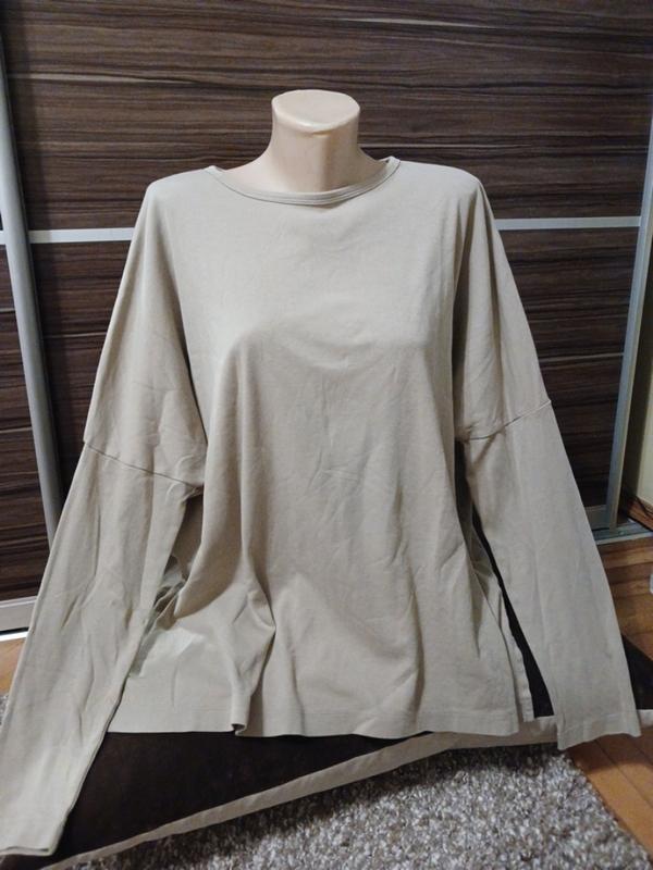 оверсайз, пог до 77, длина 64, рукав ниспадающий от шеи 73. Указан размер М