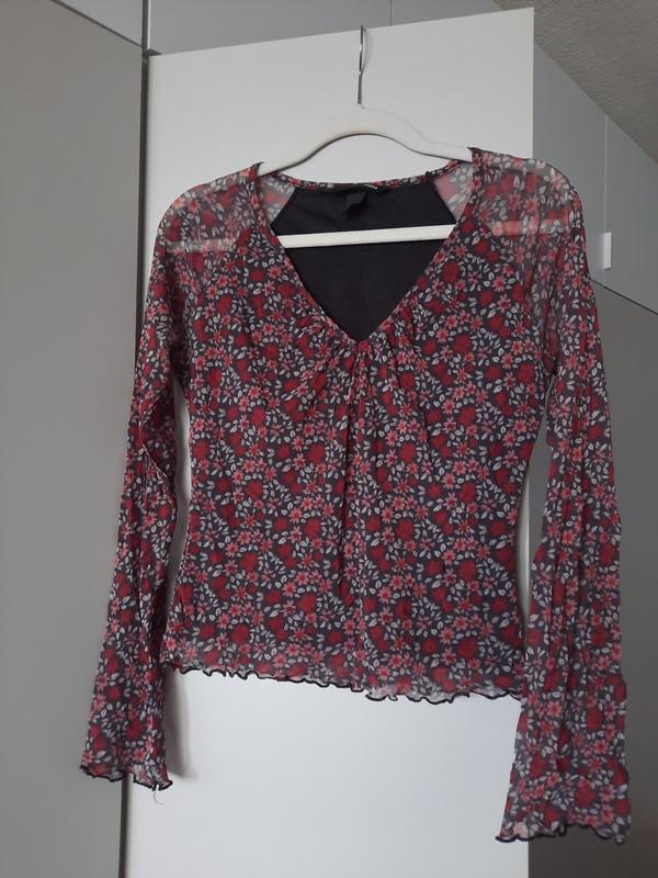 Женская кофточка бренда H&M с цветочным узором🌸 Поблизительно можно рассмотреть на втором фото. Рукава прозрачные. А впереди и сзади идет с подкладкой. Имеет V-образный вырез. Размер указан S, на М будет более облегающим. Кому интересны и возникшие какие-то вопросы, пишите🤗 С радостью ответь на все, что интересует. Если есть дополнительные замеры или фото-скана😉