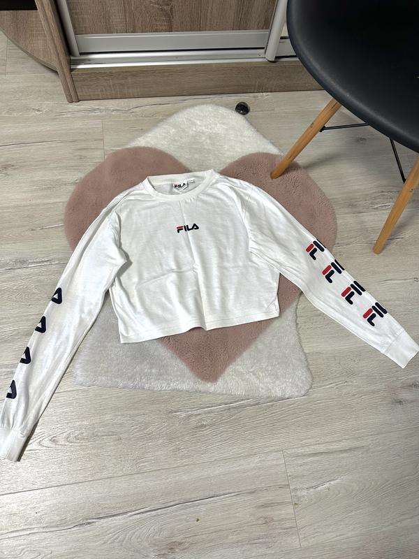 лонг от Fila. состояние идеальное но есть нюанс (один рукав слегка перекручен. коттон. длина- 44см; ширина под руками- 57см; ширина уничтожения- 44см; длина рукава- 72см