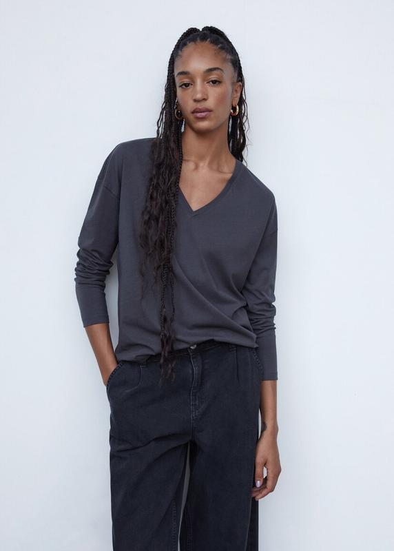 Mango V-образный вырез 100% бавовняна тканина XS в наличии АРТ. 57014404 Цвет: Темный вересковый серый