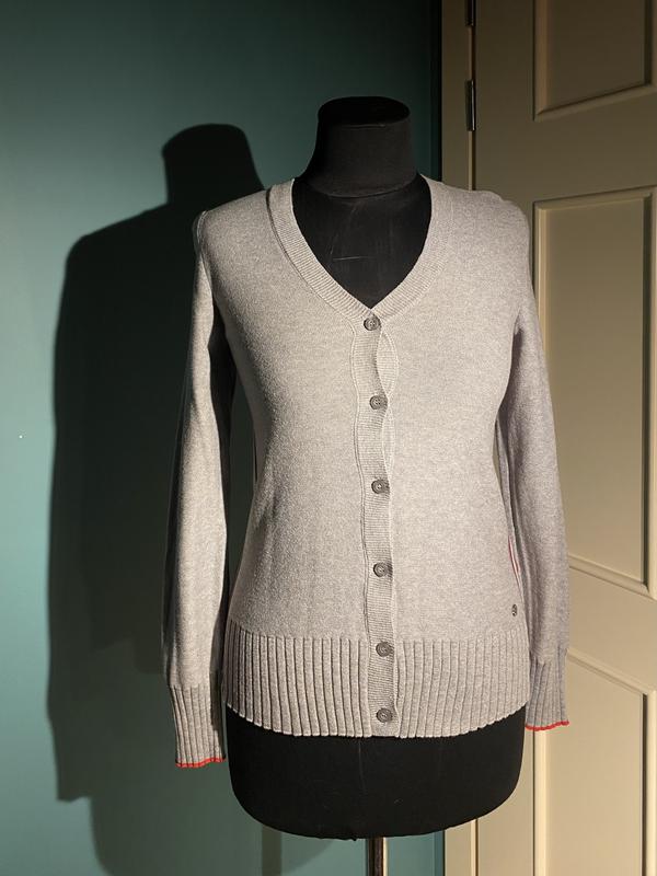 Сірий лонгслів CECIL з червоними та синіми смужками по боках — теплий, але приємний на дотик. Склад: 49% бавовна, 49% поліакріл, 2% поліестер