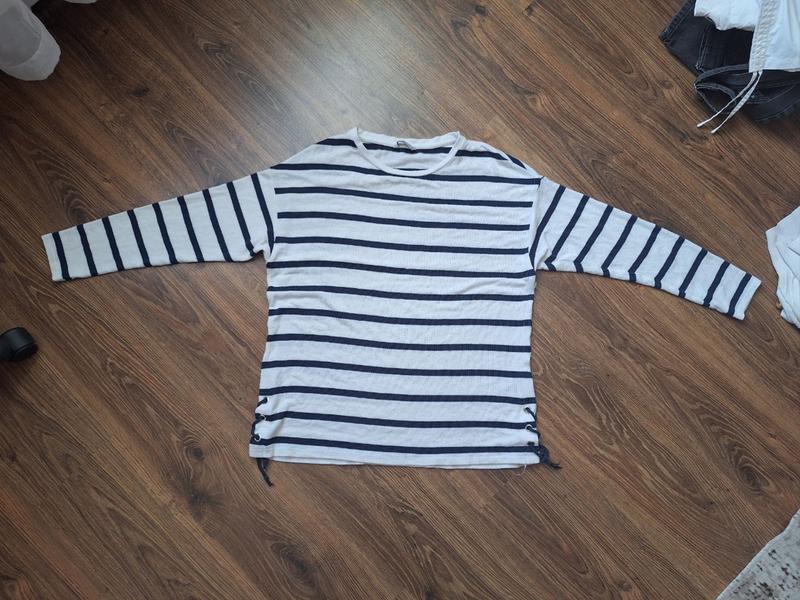 Лонгслив в полоску с завязками накрест в низу. Не мнеться.