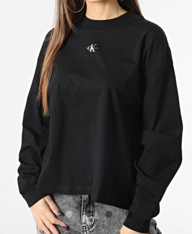 Лонгслів calvin klein jeans світшот оверсайз чорний вільний крій s, м