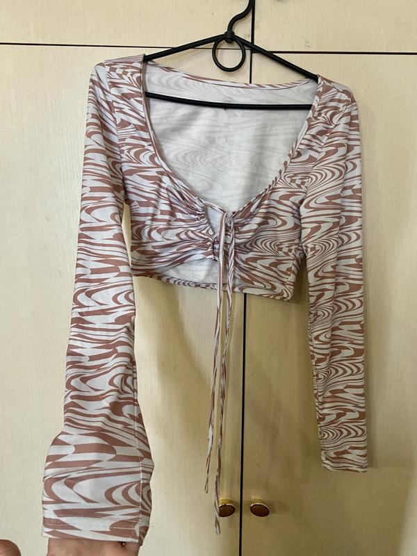 Кроп топ корсет з довгим рукавом з мікрофібри спандексу на зав’язках на груді зебра y2k s...