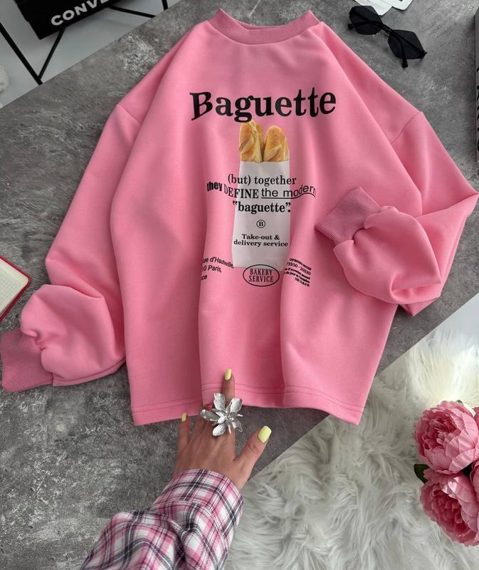 🥀Новинка🥀 Фото РЕАЛ💟 Лонгслив “Baguette”🥖 Код 236 Ткань: петля пенье + рибана Размер: 42-46 оверсайз Цвета: Барби Стильный лонг на каждый день. Свободного оверсайз фасона. Из качественной ткани, которая не скатывается и не теряет цвет. Манжеты из рябины. Рисунок - накатка высокого качества. Сделай себе подарок!