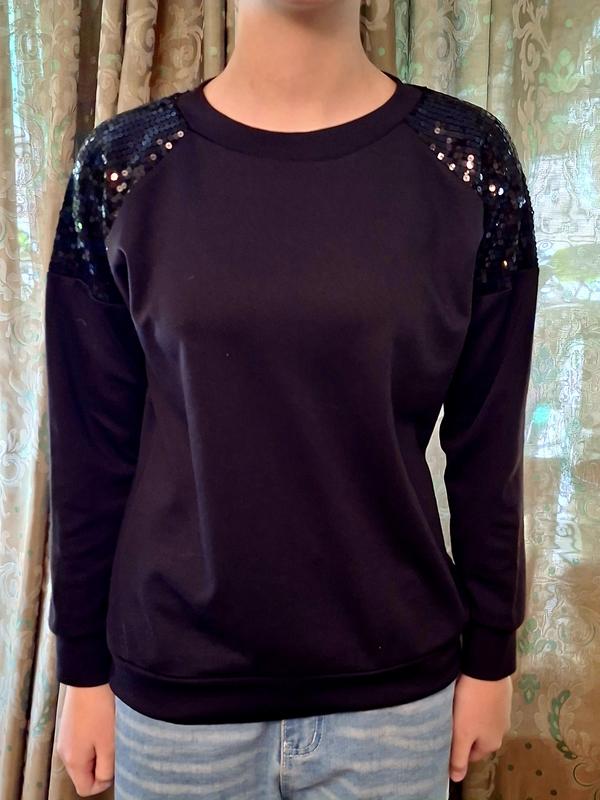 длина 62,см,длина рукава от плеча 64см,ПО груди 52 чёрного цвета пайетки на плечах