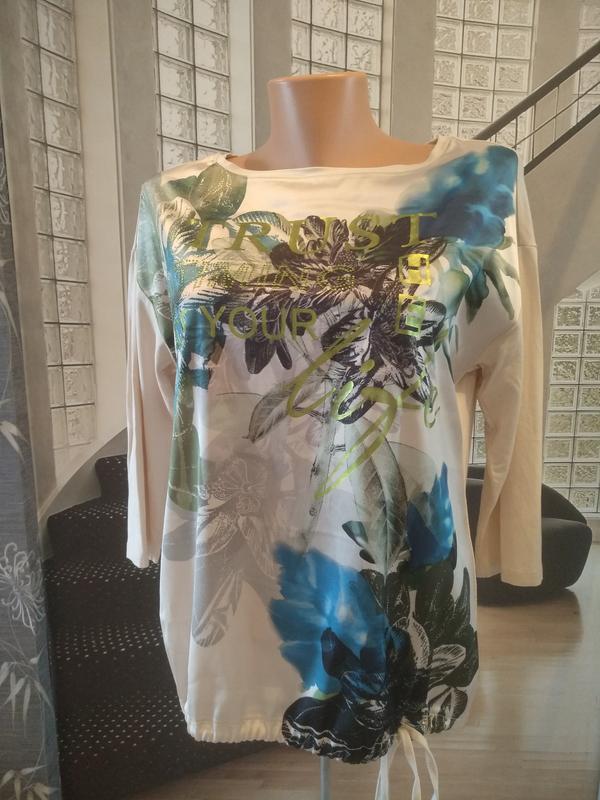 комбинированный лонгслив от немецкого бренда престиж класса Betty Barclay цена в магазине 6000 гр, опущенная линия плеча, рукав 3/4, нажаль бирки срезаны, ориентировочно размер 14, замеры на фото