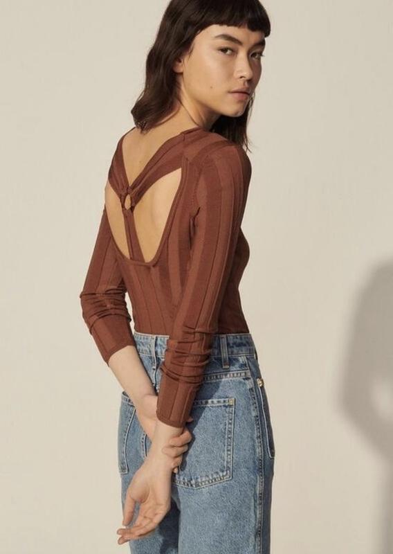 🌿коричнева кофтинка люксового бренду Sandro з відкритою спиною, гарно тягнеться Розмір:0 Заміри:ПОГ 32 см, довжина 57 см, рукав 60 см