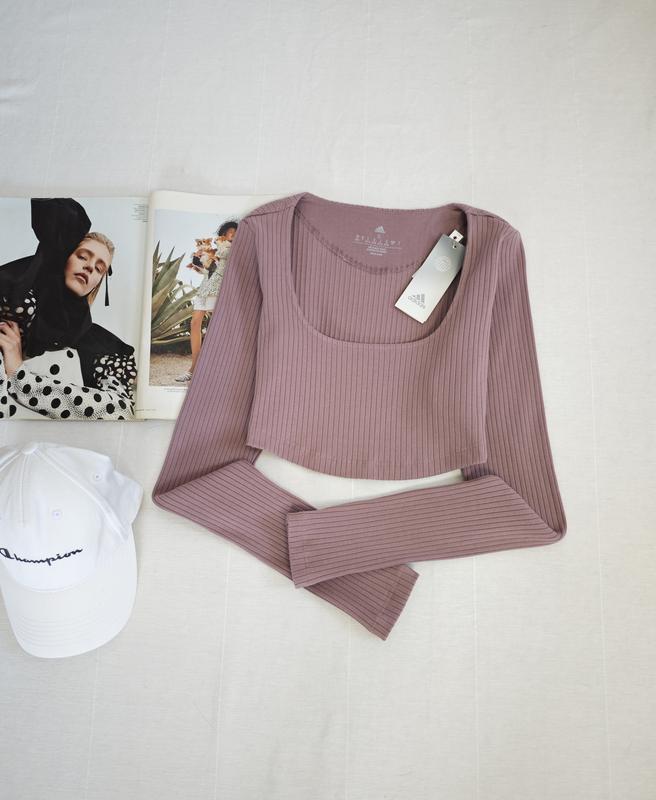 🌿сиреневый лонг рубчик Adidas красиво тянется, ткань коттон, полиэстр и спандекс Размер:S Замеры:ПОГ 36 см, длина 34 см, рукав 66 см