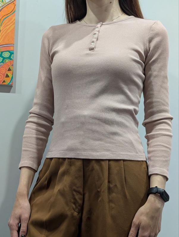 Пудровый лонгслив Sinsay, укороченный, указанный размер S, но больше подходит на XXS- XS, маломерит