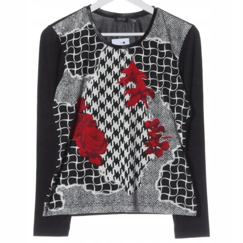 Тоненька кофта. Сзади черная. Вокруг шеи обработана экокожей. Ткань приятная на ощупь.