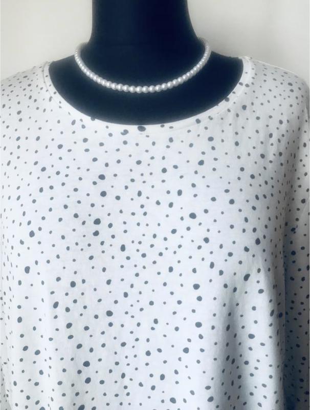 Перед замовленням обов’язково перечитайте умови, зробіть заміри, передивіться фото Лонгслів відомого бренду з 100% котону, по білому фону принт крапки різного розміру і форми, ніжний, приємний на дотик, стан і фасон максимально показано на фото, розмір указано 12-14, орієнтуйтеся по замірам. Заміри: довж -61, ш плечей-43, пог під проймами-54,по грудях-52, пот-52,по низу-56, довж рукава-58, по рукава по проймі-25, по низу-13, в районі біцепсу-18, заміри зроблено в спокійному стані, якщо якийсь важливий переміряю , повернення не має, відповім на всі питання, відправлю зручною вам поштою після оплати на картку Приват чи Моно, читайте в розділі « про мене», безпечна оплата і накладний платіж з передплатою Нова пошта, Розетка, Містекспресс. Укрпошта індивідуальне обговорення