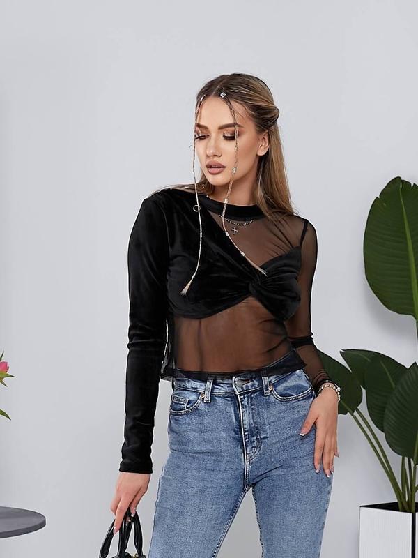 Мш 16.05 Лонгслив Мод: 0/74/47 Ткань: велюр+сетка Цвет: Черный, Пудра Размеры: 42;44;46 #наложка В2В
