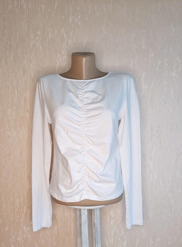 Лонгслив ZARA белого цвета с легкой драпировкой, 95% коттон, хорошего качества, в хорошем состоянии, размер 44-46