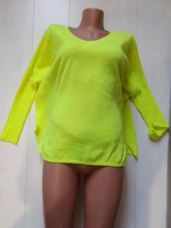 яркая салатовая очень очень мягкая и легкая.рукавая вязкая рубчик резинка.самая кофта широкая.очень комфортная красивая.по бокам разрезы. длина 59 см рукав от горловины 62 см. размер s.
