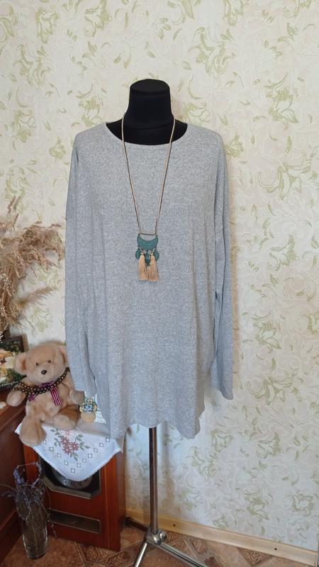 Ширина под мышками 69 см, ширина низ 71 см (по бокам разрезы), длина по спине 76 см, плечи приспущенные 73 см, рукав 51 см, ткань тянется. Бирка обрезана, на ощупь приятный, мягкий, не натуралка это точно.