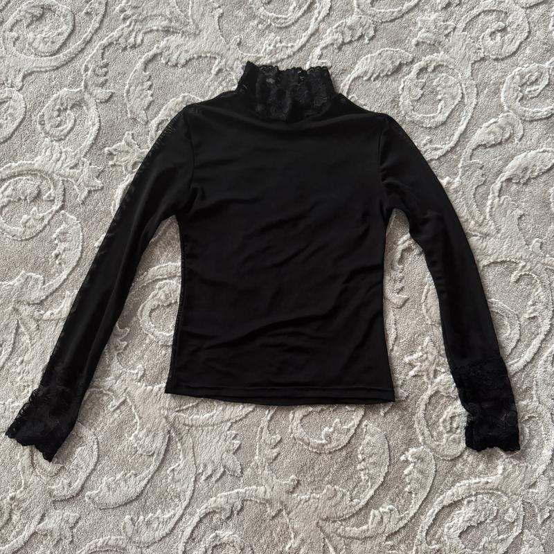 Чорний лонг прозорий, з мереживом на рукавах та на горловині😍 Одягався один раз, стан ідеальний Підійде на розмір S та М