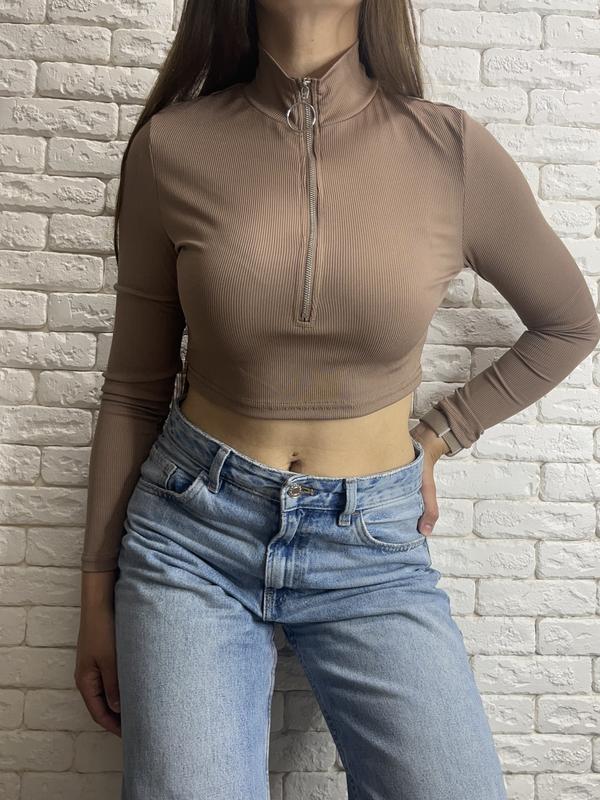 Лонгслів в рубчик вкорочений на довгий рукав. Стан ідеальний Тканина еластична Розмір М