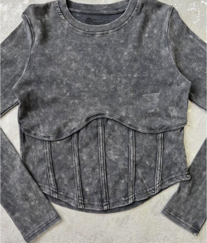 👆Кофта з імітацією корсету Тканина - рубчик Розмір універсальний 42/46 Колір темно-сірий 95 % котон