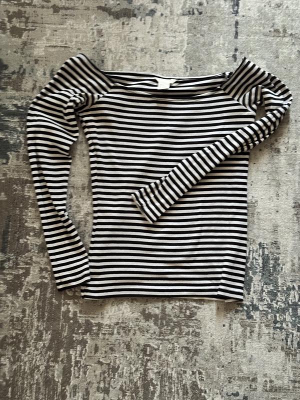 Жіноча кофта в чорно-білу смужку з відкритим плечима