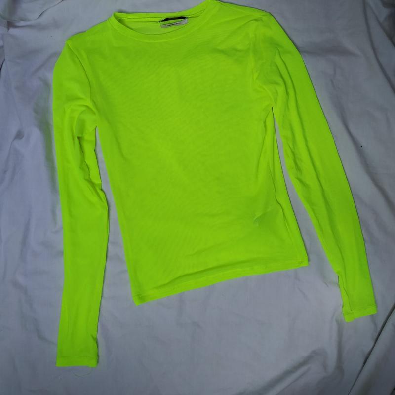 Лонгслив салатовый, неоновый,сетка pull & bear