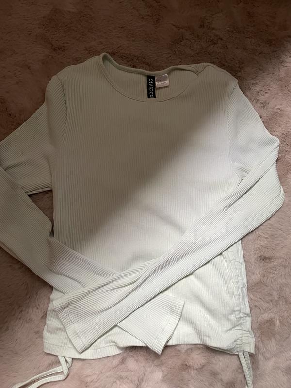 Кофтинка на стяжках Бренд: H&M (линия Divided) Размер: S Материал: рубчатый трикотаж Длинный рукав, круглый вырез Декоративные стяжки по бокам (регулируемые) Состояние: б/в, цвет немного выгоров, в целом хорошее состояние