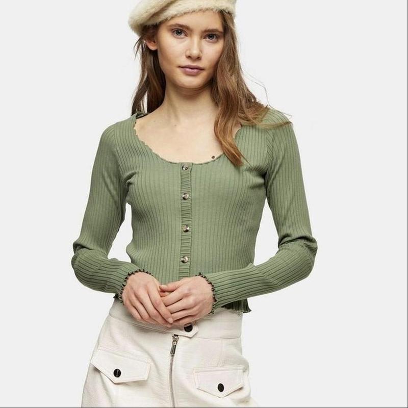 Кофточка трендового фисташкового цвета от бренда TopShop. Очень нежная, красиво смотрится на теле (гудники не отстегиваются) Размер S Стан идеален, без нюансов Состав на фото