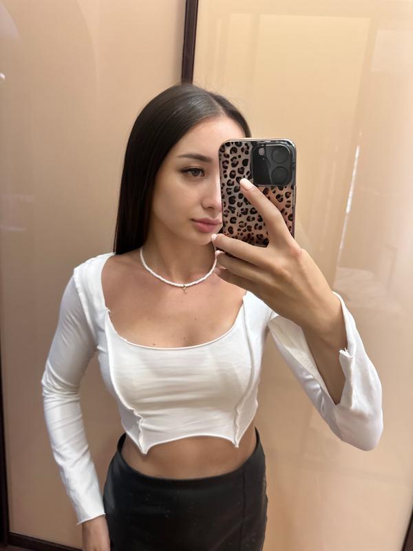Білий укорочений лонгслів Рукав широкий Тканина приємна до тіла Розмір С Стан хороший