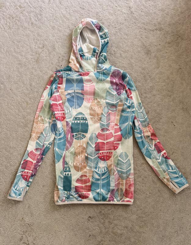 Кольоровий тонкий термо лонгслів з мікрофлісом відомого бренду Roxy. Розмір XS, може бути на S На рукавах є вирізи для великих пальців, капюшон-Балаклава під шолом. Ідеально зручна піддіва для зимового лижного спорту. Є невелика, ледь помітна кашлалатісь на зовнішній стороні