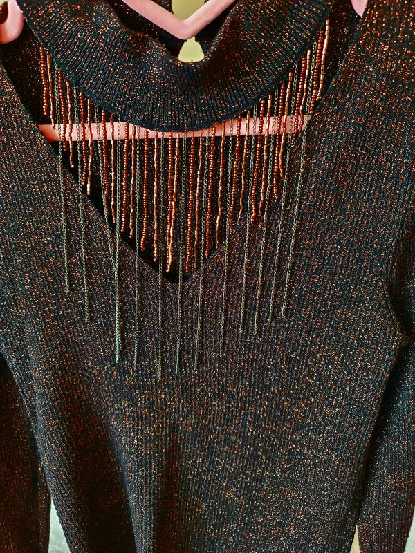 Лонгслив коричневый люрекс декорирован с бисером и цепочками лонга укороченный топ по фигуре с длинным рукавом s Мягкая ткань, приятная на ощупь, тянется, состояние новой вещи Дизайнерская отделка кофты с уникальной отделкой украшением бисером и цепочками, выглядит невероятно... мягко сияет Вы в такой будете лишь одна, повтору этой кофты нет, это ручная работа бисерного дополнения, которая я заказывала в ателье в мастерстве хендмейд Придаст женственности, подчеркивает талию По дополнительной информации и замерам обратитесь в личные🍀 86 РАЗВАНТАЖЮСЬ, буду выкладывать много классных вещей, некоторые даже не успела ни разу одеть, добавляйте в выбранное и подписи на мой профиль, чтобы не потерять