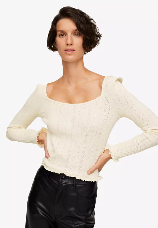 🤍 Ніжна в'язана кофта Mango, розмір S Стильна кофту від Mango – ніжного молочного кольору. Дуже жіночна модель з квадратним вирізом, легким приталеним силуетом і акуратними рюшами на рукавах та по низу. 🔸 Розмір: S 🔸 Стан: ідеальний (з біркою) 🔸 Матеріал: м’який трикотаж, приємний до тіла 🔸 Виглядає дуже стильно як з джинсами, так і з шкіряними штанами чи спідницею 💡 Ідеальна для осені або прохолодних літніх вечорів.