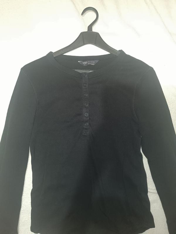Черный женский лонгслив с длинным рукавом и планкой на пуговицах. Стан хороший.