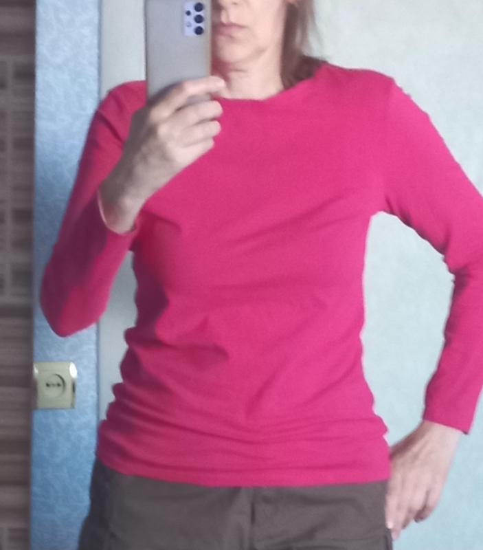 Лонгслив / Футболка с длинным рукавом. Размер M. 95% хлопок, 5% эластан, красивый розовый/малиновый цвет Приятный трикотаж. Можно носить как самостоятельную вещь и как нижний слой под жакет, свитер, кардиган,. Для отдыха, фитнеса, утепления. Хорошо будет смотреться со свободными джинсами/брюками. На фото надет на размер М.