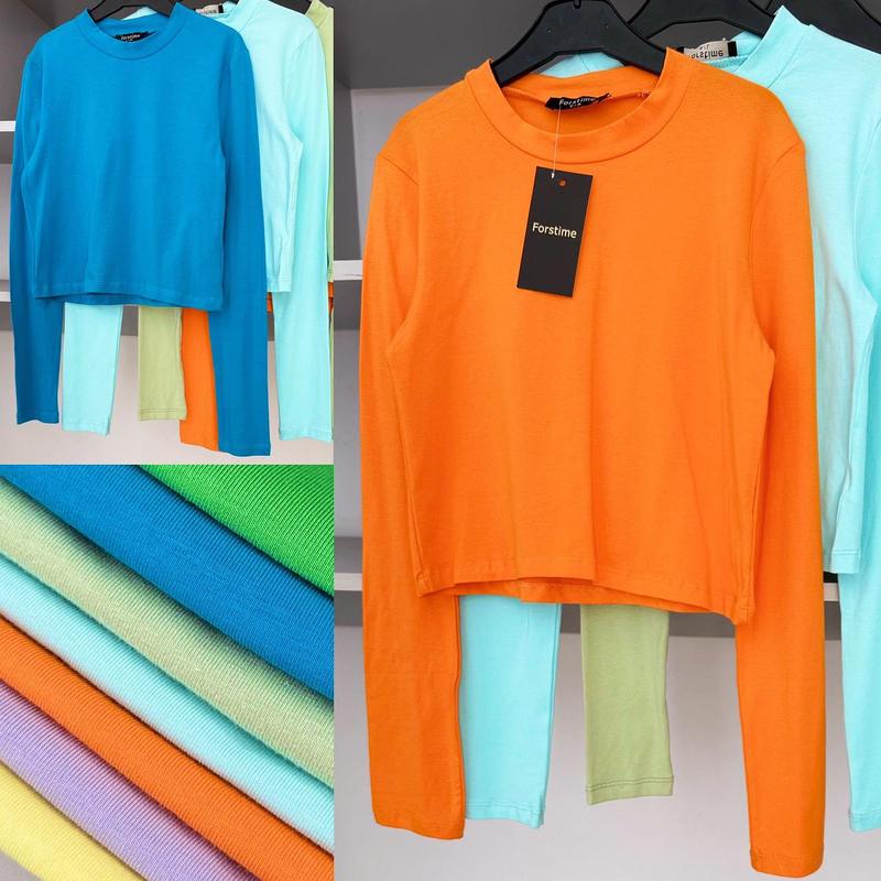 Розпродаж 🔥Ціна 180грн🔥🔥🔥 Стильні лонгсліви🤩😻 Якість відмінна, котон 👌👌👍 Виробник Туреччина Кольори: синій, лаванда, жовтий, оранжевий, фісташка, блакитний, салатовий. Розміри С/М: Пог 40, рукав 60, довжина 40 М/Л: Пог 42, рукав 60,довжина 41 Л/Хл: Пог 44, рукав 60, довжина 42см Дуже добре тягнуться.