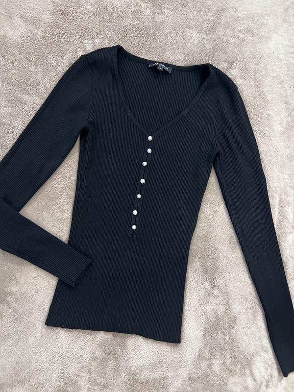Лонгслів Morgan чорного кольору, тканина в рубчик, з v подібним вирізом , оздоблений гудзиками 📍Розмір - S/M 📍Пог-34 (45) 📍Довжина-58