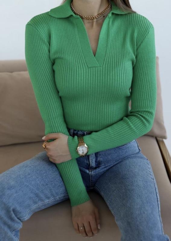 Лонг поло в рубчик в зеленому кольорі. Склад бавовна. Стан нового.Розмір вказан XS, але можна на S та маленьку М Плечі 34 см ПОГ 35 см( тягнеться 55 см) Рукав 60 см Довжина 60 см Мірки зняти в спокійному стані