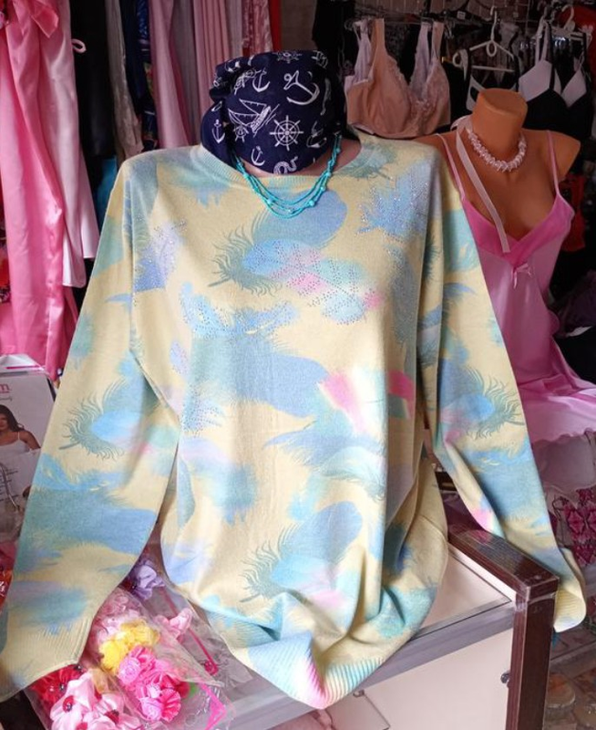 Лонгслив с длинным рукавом, состав ткани= кашемир+коттон. Свитер мягкий тоненький но не просвечивающий. Трикотаж приятный к телу и тепленький. Рисунок спереди и сзади одинаковый. Спереди добавлены мелкие камешки (на фото их не заметно). Размер один, пойдет на 52, 54, 56. В наличии три цвета-фото 1, 2,3 (желтый). Цвета пастельные, выглядят нежно, гармонично. Пересылаю после оплаты на карточку. Є безпечна оплата.