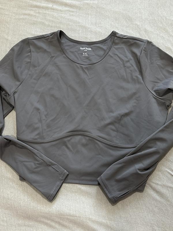 Дуже якісний лонг американського бренда із імітацією косерта під грудьми Тканина схожа до масла Стан 5/5😍 Не пошкодуєте Можна взяти як для спорту так і для кожного дня Є вирізи для пальчиків